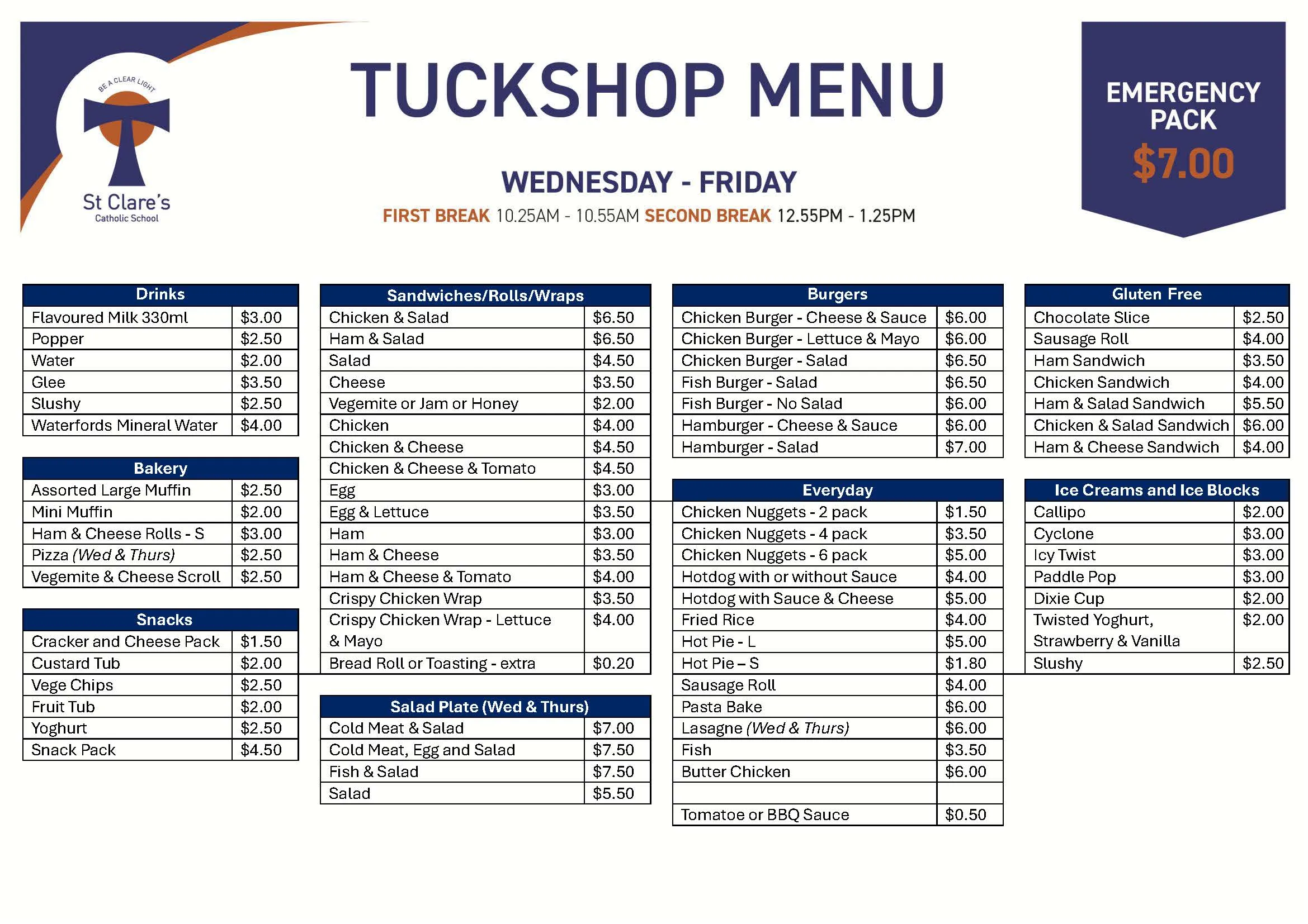 The Tuckshop is open every Wednesday, Thursday & Friday for Morning Tea and Big Lunch offering a wide range of nutritious foods.